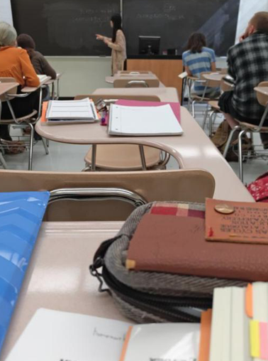 这边的教室一般都是这个样子的,除了在主教上的经济学是大课,是在一个可以容纳100人的大教室之外,我们日语和美国文化都是在这样的教室上课。其他的是在Fine Art教学楼里上,可能是艺术生比较多,所以教室大多数都是大桌子,两个人一张桌子,我们10个人经常是面对面坐着,听老师讲课。
