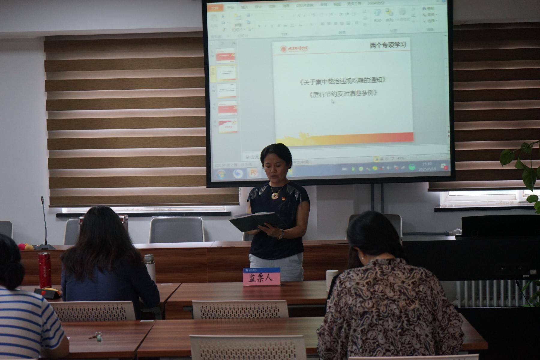 在活动中,支部组织委员孙静波老师首先带领党员们开展了《党政机关厉行节约反对浪费条例》、《关于集中整治违规吃喝的通知》两项专题学习,对违规吃喝的相关案例进行了学习,明确了违规吃喝行为不仅违反了党的纪律,也损害了党的形象,同时,党员们还进一步认识到节约资源、反对浪费的重要性,纷纷表示将在日常生活中践行节约理念。