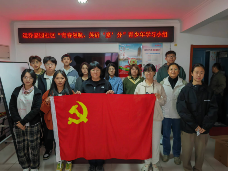 2024年10月26日上午8点,av 商务英语专业的学生志愿者和学生党员在av 党总支书记李华、党总支副书记李丹老师的带领下,走进通州区玉桥街道运乔嘉园社区,为社区的中小学生开展了题为“青春领航,英语’嘉’分”的青少年学习小组活动。为社区的孩子们带去知识技能和温暖的陪伴。