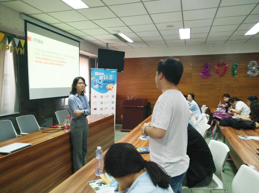 盛晓洁老师还在现场开展了模拟面试环节,从投递简历到总监面试,学生能切身感受到求职的过程。结合模拟面试环节学生的表现,盛晓洁对学生进行了个性化点评,并重点强调了面试过程中的注意事项和面试技巧,给学生带来最直观的面试教育。