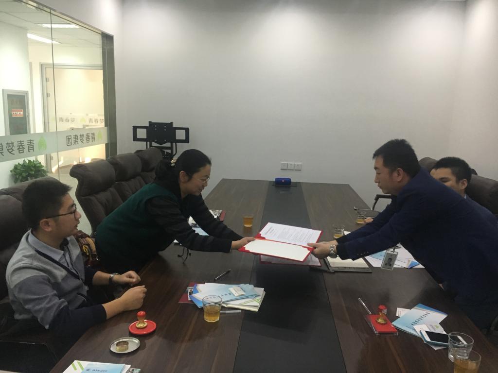 2017年12月1日下午,av 副院长(主持工作)李华、党总支副书记王有及分团委书记李青青一行来到北京市大兴区青春梦文化投资集团,并签订了实习基地协议。