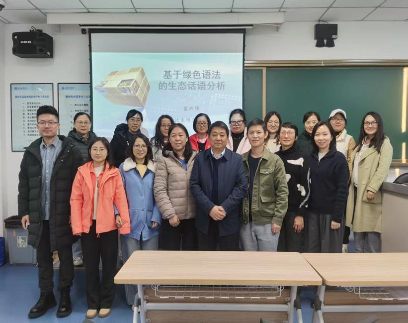 讲座伊始,苗兴伟教授结合大量的语言实例和语言现象向老师们讲述了什么是绿色语法,包括绿色语法的起源与研究内容等。随后,苗教授深入阐述了语法系统与生态系统的关系以及绿色语法的及物性。绿色语法是人与自然和谐共生的关系在语法系统中的体现,体现了大自然的生命意义,有助于提高人类的生态意识和生态素养。最后,苗教授与大家共同探讨了绿色语法的价值旨归与运作机制。绿色语法不仅是语言生态化的源泉,亦是话语生态化的内在动力。