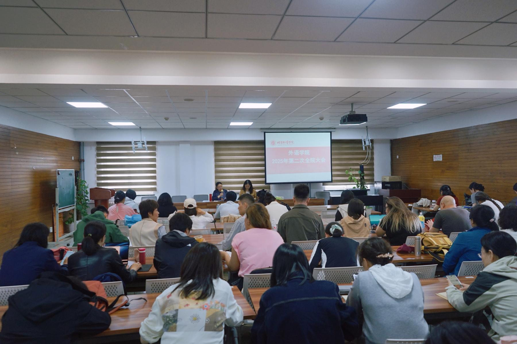 随后王淑花院长立足学院发展全局,对AI赋能教学、学科专业建设、人才引进、开拓就业渠道、公共基础课教学改革等核心任务作出部署。学院将深化全员促就业机制,在访企拓岗行动基础上,动员全体教师挖掘行业企业资源,开拓校企合作渠道,为毕业生开拓实习与就业岗位,并延续就业贡献激励政策,对提供有效岗位或促成实习签约的教师,在年终考核、绩效评定中予以专项加分。学院人才招聘侧重理工背景,以满足学校对理工类专业占比的要求,学院需积极应对招聘挑战,吸引更多优秀人才,教师需从知识传授者转变为学习引导者、能力激发者、情境创设者、创新策源者及伦理守护者。学院将于下周三组织数字赋能应用型高校外语教学专题研讨,推动教师角色转变与教学方法改革;并着重关注公共课改革与教学质量提升,鼓励教师利用数字人、智能体等新技术手段,节省教学成本,提升教学质量。
