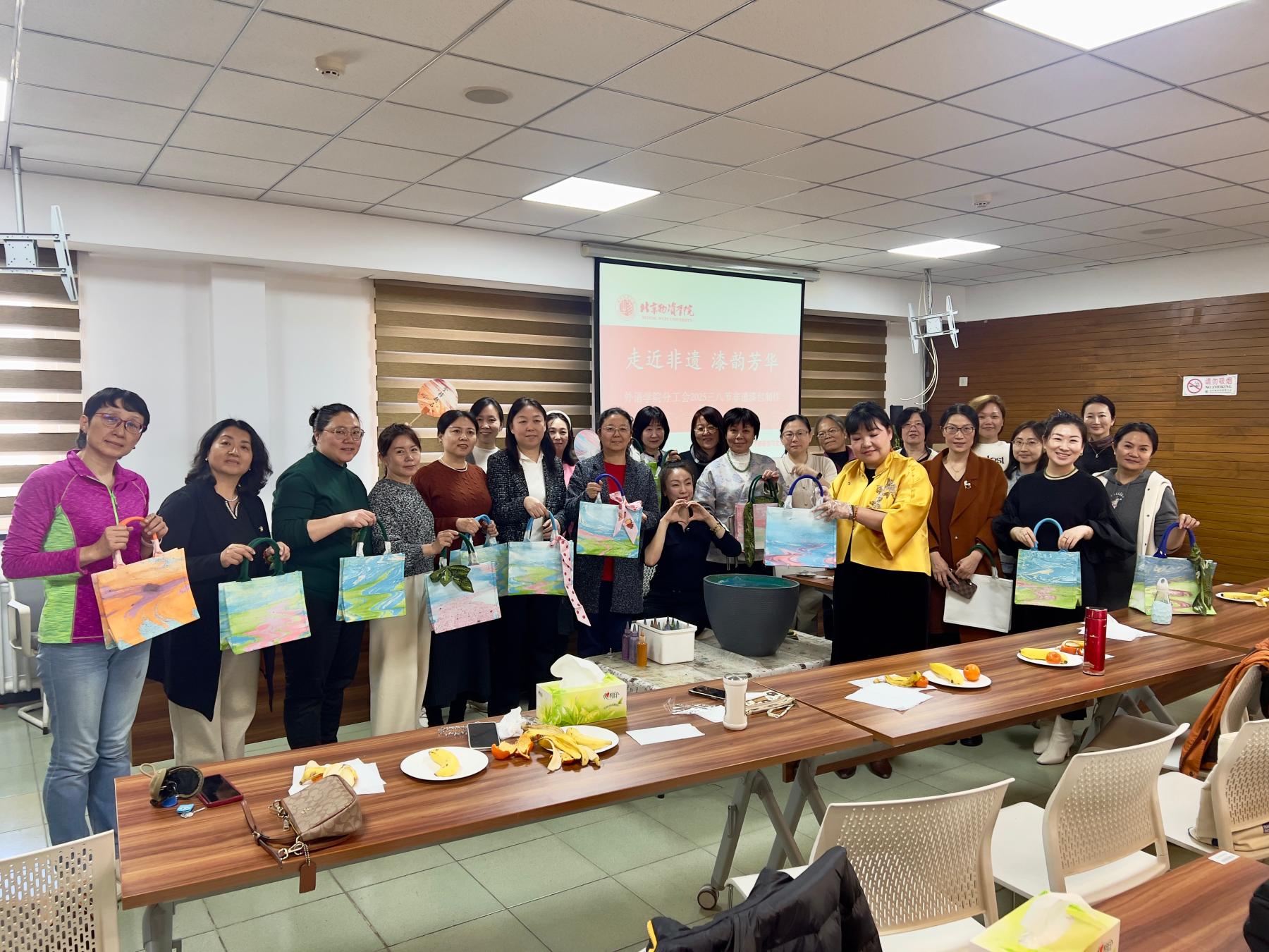 为弘扬中华优秀传统文化,丰富女教职工精神文化生活,3月12日下午,av 分工会在人文楼600举办"走近非遗·漆韵芳华"主题庆祝活动,以沉浸式非遗手作体验献礼第115个"三八"国际妇女节。学院领导班子、工会委员等20余名女教师共同感受了大漆艺术的千年魅力。