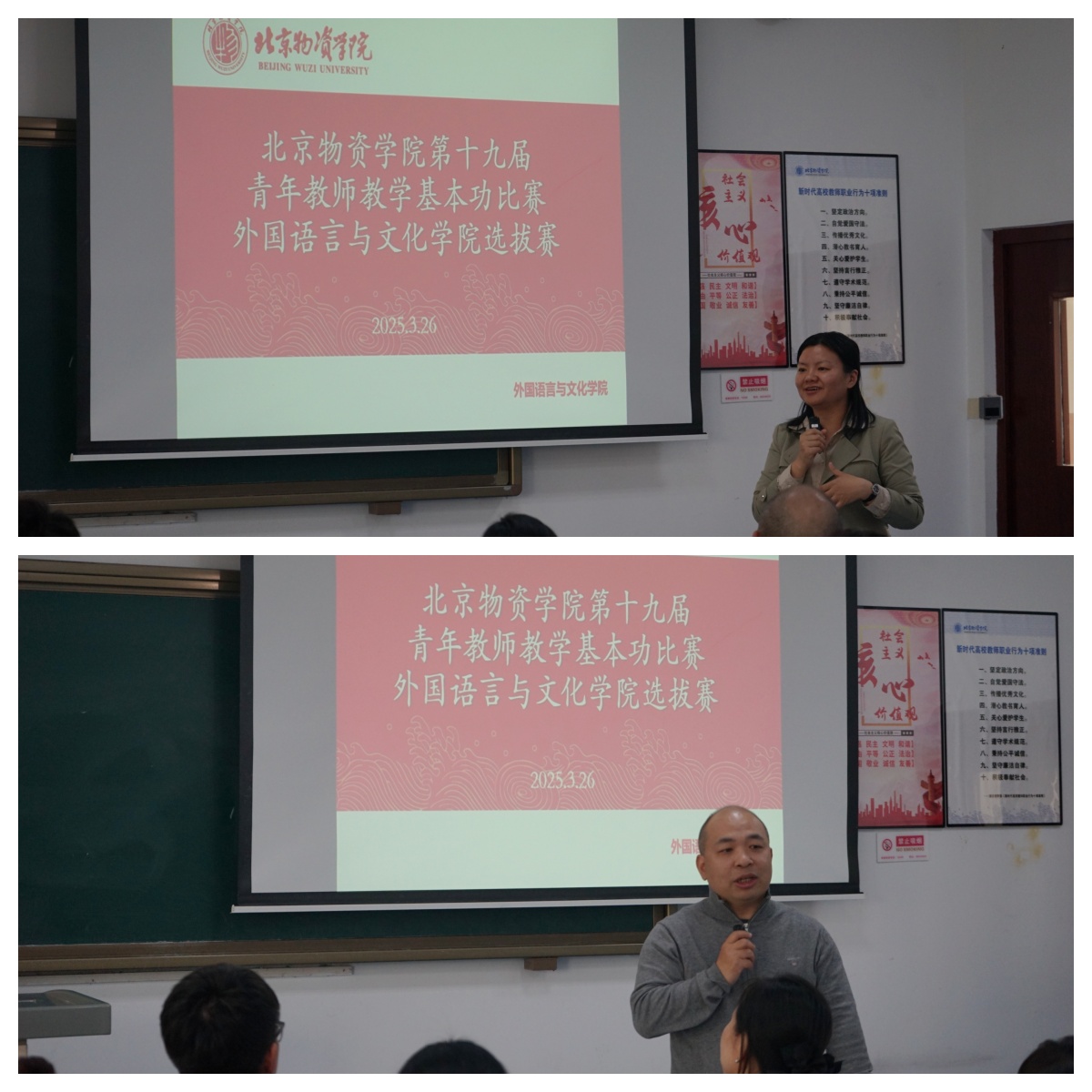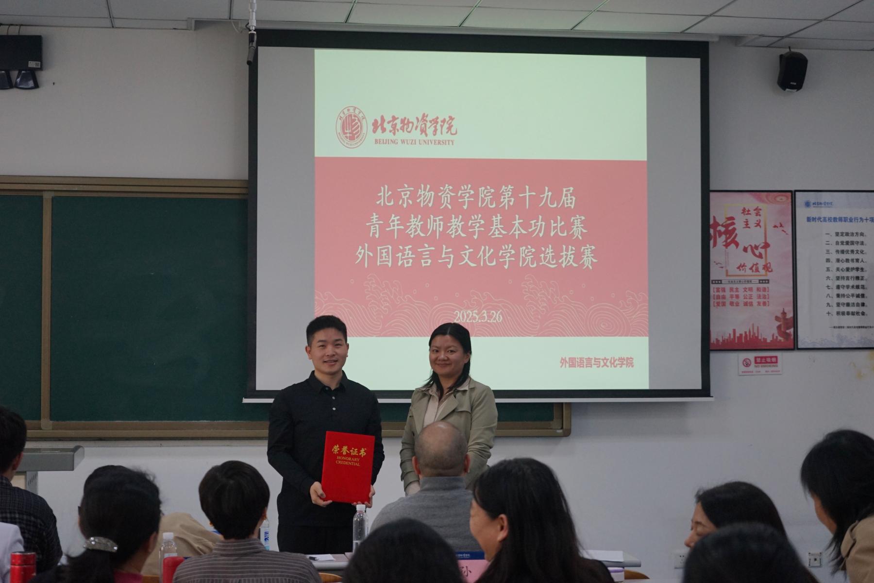 2025年3月26日下午, av 在二教203教室成功举办了av 第十九届青年教师教学基本功大赛院内选拔赛,共有4名青年教师做了精彩展示。校工会常务副主席荀萍、教务处副处长陈娟亲临现场观摩比赛。荀萍主席在赛前做了简短发言,充分肯定了av 对本次比赛的重视和前期准备,同时也对青年教师们寄予了厚望,希望老师们尽快成长。av 党总支书记李华、院长王淑花、副院长李海英、任丽丽、及全体教师均在现场观看了比赛,比赛由分工会主席裴姝娟主持。